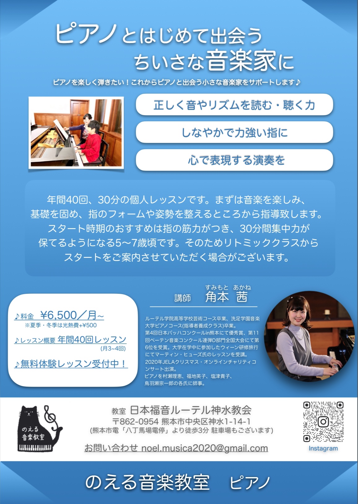 ※尚、土曜日のピアノコース募集は、現在行っておりません。